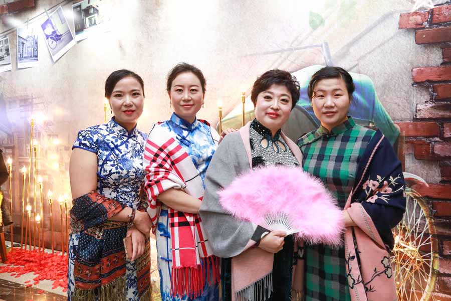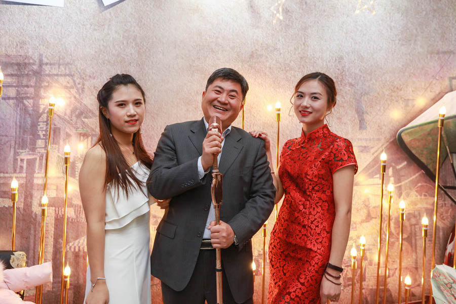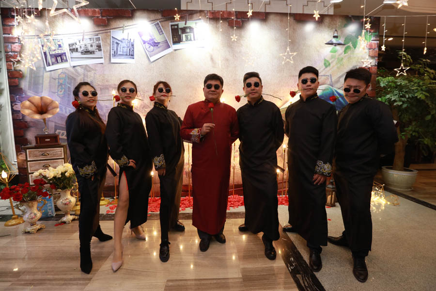 下午5時,雅文大酒店一樓門庭若市,人頭攢動,氣氛異常熱烈!一進門,別致的星星簽到墻映入眼簾,再轉身,璀璨星光浪漫滿屋,舊照片,留聲機,油紙傘,民國金曲……老上海style撲面而來。旗袍美人笑語娉婷,西裝革履英姿颯爽,好一派十里洋場美如畫!