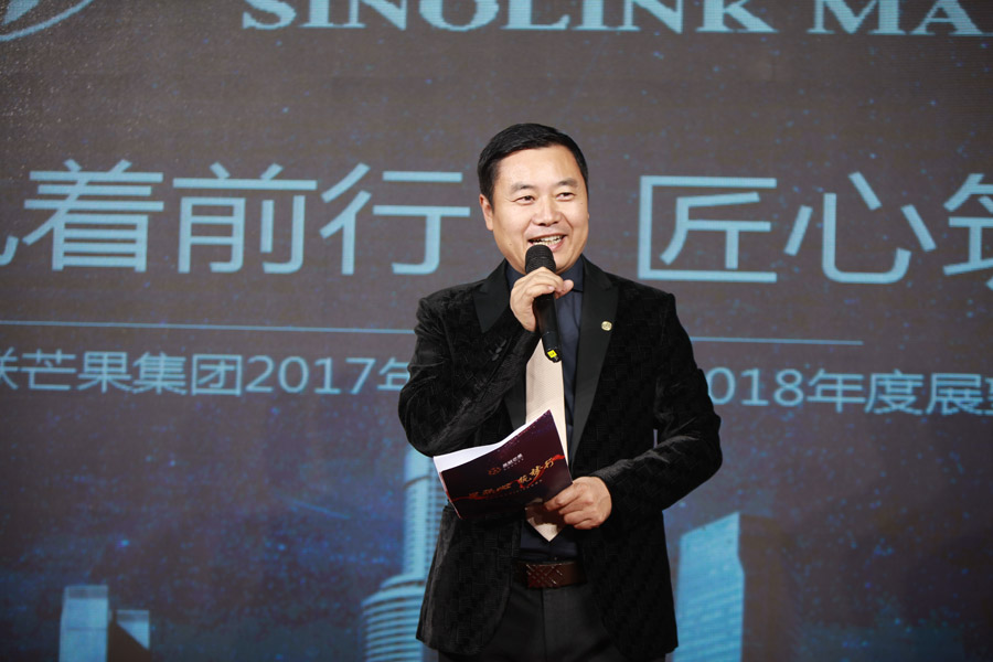 年會盛典由董事長王永光的一篇新年寄語,正式拉開序幕。2017年,是星聯芒果公司不斷發展壯大的一年,地產、環境工程、金融投資等板塊在經歷動蕩的市場環境之后仍穩健前行,增加了星聯安郡、星聯中心等多個開工項目,新密廚衛產業園也簽約在即,這背后離不開每一位員工的默默付出和努力,董事長致以深切的謝意。
