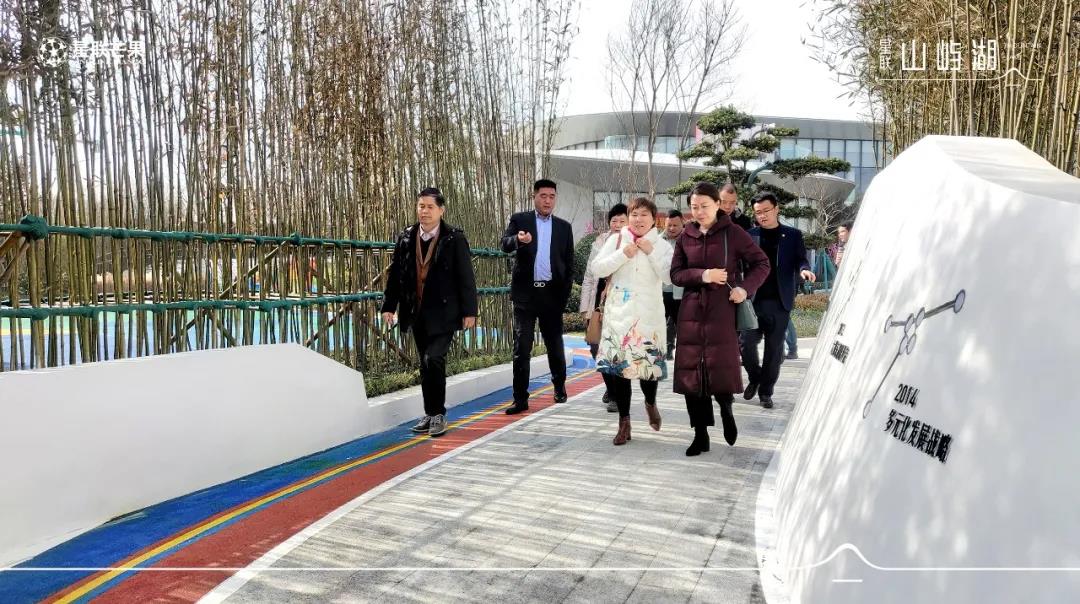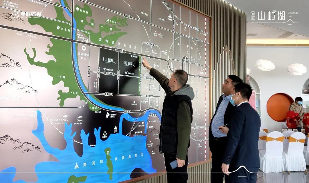 在熱烈的歡迎儀式后,校友團對星聯山嶼湖營銷中心進行了參觀與考察。