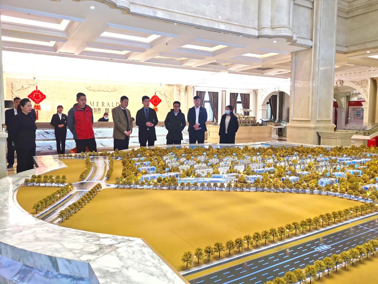 在熱烈的歡迎儀式后,美倫集團(tuán)和地產(chǎn)商會(huì)代表一行在星聯(lián)芒果集團(tuán)鄭東片區(qū)營(yíng)銷(xiāo)負(fù)責(zé)人王琳的陪同下,先后前往集團(tuán)開(kāi)發(fā)的楓橋?yàn)场⑿锹?lián)灣、鄭東嵐溪府、星聯(lián)中心等項(xiàng)目參觀考察。