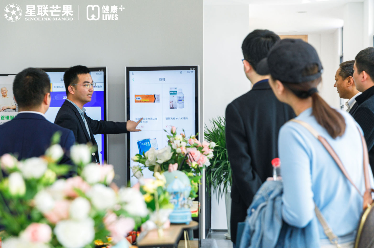 最后,在萬眾期待下,星聯芒果集團董事長王永光、春雨醫生副總裁何小建、華本投資董事李先科、星聯芒果集團多元化集團董事長郝伊凝、星聯芒果集團多元化集團總裁梁紅偉五位領導共同登臺,攜手為星聯芒果集團落地的首家智慧健康服務中心剪彩揭幕,共同開啟健康人居的星聯新篇!