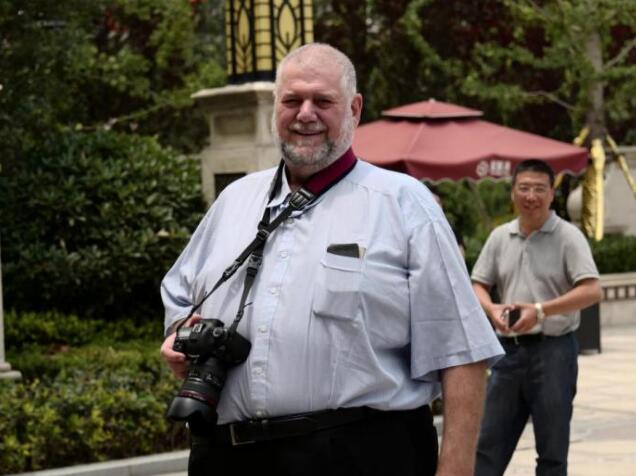 加拿大的攝影家布萊恩·史密斯(左)認真拍攝星聯灣